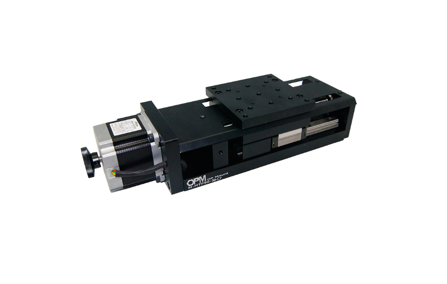 Standard accuracy motorised stage, 90×90 mm platform, 50 mm travel, equipped with C7 ball screw.