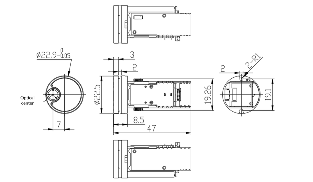 Engineered for easy integration, LS74A runs on 3–12 V with ≤ 1.5 W power draw and uses a GH 1.25 6-pin connector for power and serial I/O. It communicates at 115 200 baud and exposes distance, temperature, version and status bytes per the documented frame map. The aluminum-shell unit measures 24 × 24 × 47 mm and weighs ~22 g, with operating temperature −20 to +65 °C. Installation is via side mounting holes; avoid housing damage and keep the optical mask clean for best performance.