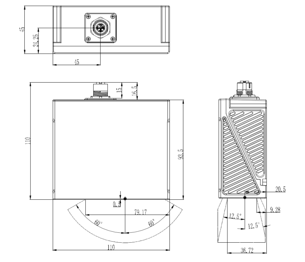 The CX6S3 hybrid solid-state LiDAR is a six-channel hybrid solid-state LiDAR built for industrial 2D modeling, detection, and obstacle avoidance. It uses a 905-nanometre Time-of-Flight emitter, is Class 1 eye-safe, and delivers up to 48,000 points per second in single-echo mode with ±3 centimetre range accuracy and a detection range up to 20 metres at 10% reflectivity. The horizontal field of view is 120 degrees with 1 degree vertical span, housed to the IP 6K9K protection level for harsh environments and rated from −40 °C to +85 °C. Dimensions are 110 × 93.5 × 45 mm, ~635 g.
